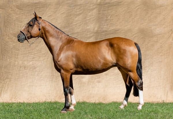 ESTA POTRANCA BAYA, REDOMONA DE BUENOS ANDARES, ES UNA HIJA DEL GRAN CASMURRO CALABASSA, GC DEL PRADO (UY)2017 EN UNA YEGUA HIJA DEL CHARQUE CAPRICHO, PADRE DE GRANDES CAMPEONES DE PALERMO COMO EL MANEADOR CARNAVALITO ENTRE OTROS